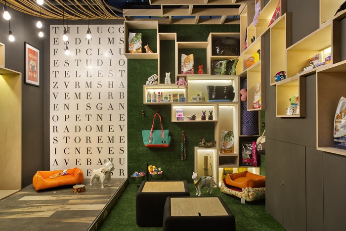 A proposta é mostrar como o universo dos animais de estimação influencia e é influenciado pelo design. Os revestimentos escolhidos conferem um clima orgânico e lúdico à Pet Store – como os nichos em MDF cru, formando uma grande árvore de caixas – gerando uma interatividade do visitante com o espaço e transformando a visitação em uma experiência de consumo.