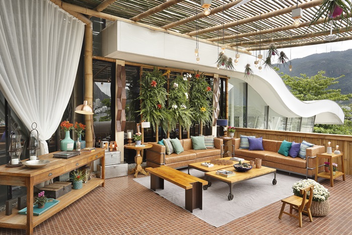 O espaço foi concebido como um convite irrecusável a desfrutar a paisagem da Lagoa, na companhia do Cristo Redentor. Com uma releitura do modernismo em um ambiente contemporâneo, inspirado em Le Corbusier e Eero Saarinen, a estrutura de canos hidráulicos desvenda o oculto das construções e o alumínio escovado se equilibra com a madeira de demolição, traduzindo força e consistência em contraponto à resiliência da pérgola em bambu. Por fim, a leveza e alegria do carioca são reveladas na presença da natureza e no sofá/balanço, que suspenso no ar, permite projetar os sonhos. O ambiente chama ao diálogo e a celebrar a sustentabilidade da vida.