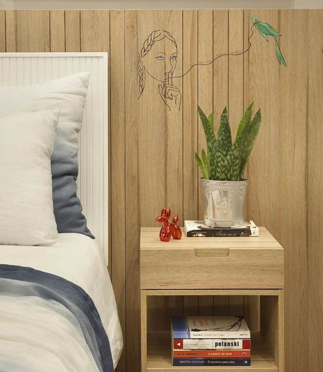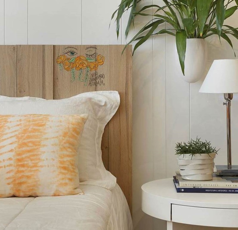 Além das peças expostas no showroom – cabeceiras e painéis de cama, mesas laterais, banquetas e prateleiras de livro com acabamento em madeira, laca acetinada e melamina, também é possível selecionar imagens do amplo portfólio da artista para que ela as reproduza sobre outros móveis da loja. Ou ainda, encomendar desenhos de acordo com o tema da decoração do quarto.