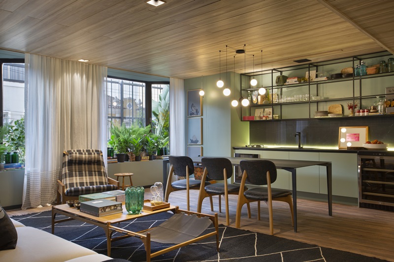 Chame como quiser: apê, estúdio, chalé ou tudo junto! Sinta o frescor das cores e estampas, a intensidade dos materiais, a convivência do aço e da natureza. Aprecie a combinação de sofisticadas e contemporâneas peças de design assinado junto às antigas peças de antiquário. Mergulhe fundo nas lembranças e na emoção com as obras de arte de Flavia Junqueira.
