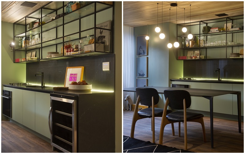 É essa a proposta do Living Sage (sage = sálvia, tempero verde), que se inicia no hall e inclui uma copa-cozinha integrada à sala e uma pequena adega, num total de 70m2. Um lugar funcional, mas que também guarda memórias, onde o verde e madeira remetem à tranquilidade de uma casinha de campo. É esse o lar que a arquiteta Bianca da Hora apresenta na Casa Cor Rio 2018, que abre ao público nesta terça-feira (18 de setembro) e vai até 4 de novembro, na propriedade do Grupo Monteiro Aranha, que fica na Ladeira de Nossa Senhora, 163, no bairro Glória.