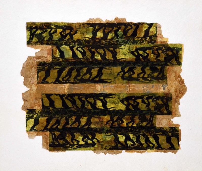 “A obra pertence a uma série na qual desenvolvo inúmeras metáforas forjadas em dorsos e posições de intimidação do homem em situações de ameaça. Neste caso específico trata-se de uma fila humana no pátio de uma prisão cujas sombras rastejantes sugerem outras verdades. Verdades que estão sendo realizadas nas imagens criadas pelo poeta entre a realidade, sonhos, temores e perplexidades do homem entre si e o outro, na vida e no tempo”, conta a artista.