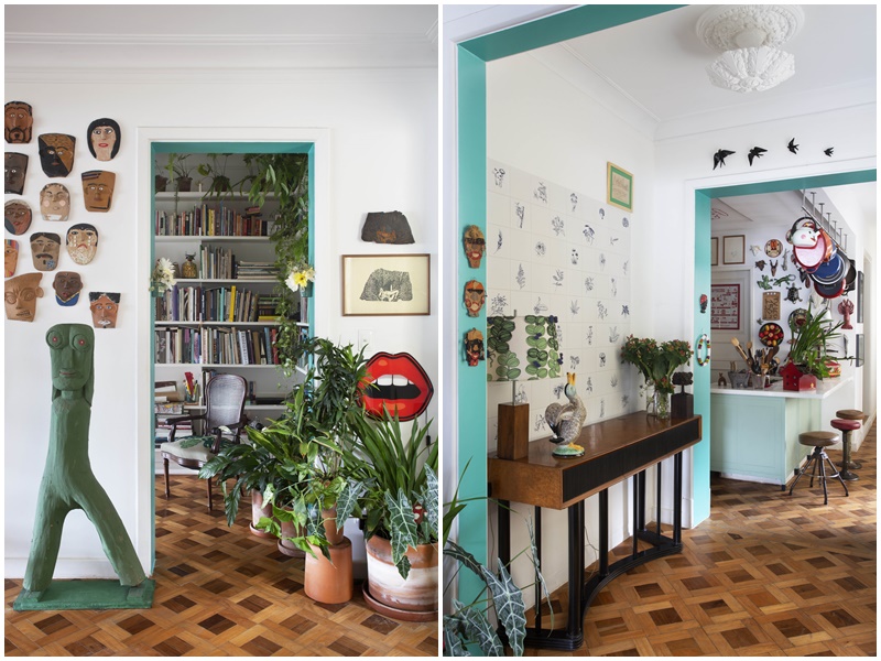 No dia seguinte, a paisagista voltou ao apartamento com um caminhão carregado de plantas cultivadas em seu horto Penta, em Jacarepaguá, desta vez levando apenas espécies que sobrevivem bem à sombra. Após algumas trocas, as plantas que precisavam de mais luz natural foram concentradas na varada da sala e do quarto e as de sombra foram redistribuídas pela casa, incorporando-se ao décor existente, assinado pelo escritório Ouriço Arquitetura, em 2016, quando a estilista se mudou para lá, junto com a filha Francisca.