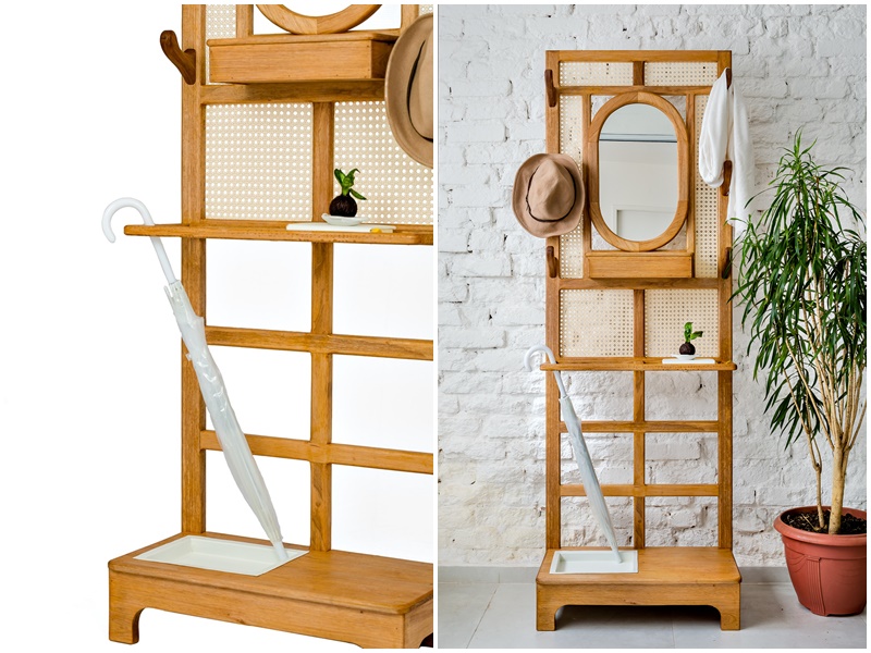O Cabideiro Lembranças, tem seu design inspirado nos antigos cabideiros de casas de fazenda, aqueles bem casa de vó, mas misturado com as curvas das peças contemporâneas, e o charme da palhinha.
