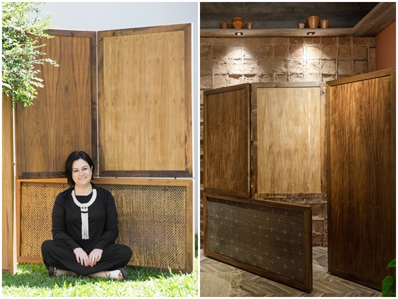Esse é o caso do Biombo Etnias, da designer Vânia Toledo Martins (Curitiba – PR), estruturado em imbuia que combinada a palha dos povos indígenas “KuiKuro” mostra toda a brasilidade em uma peça.