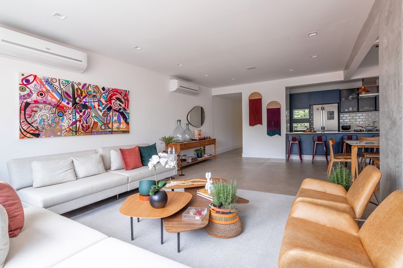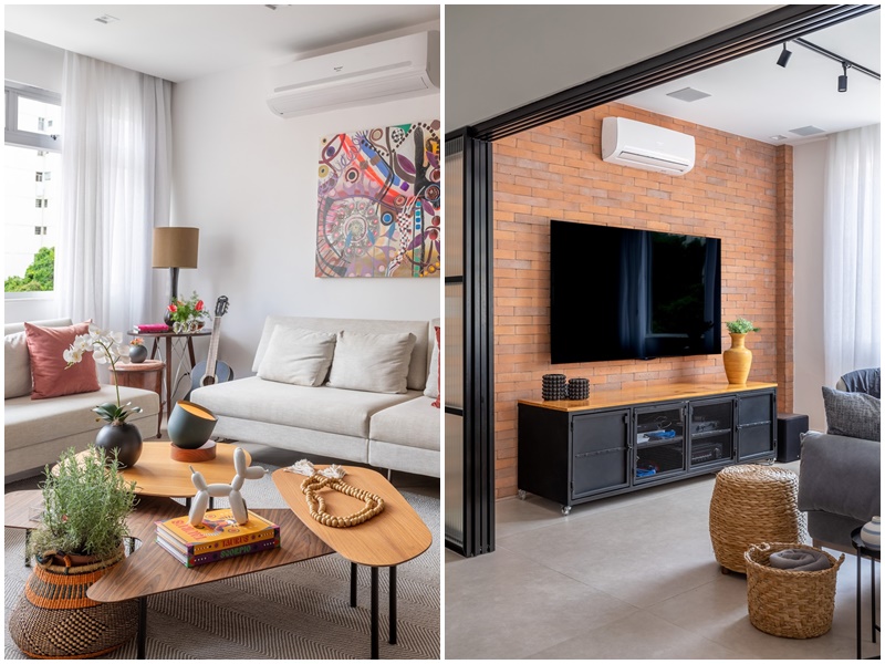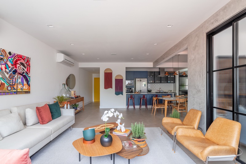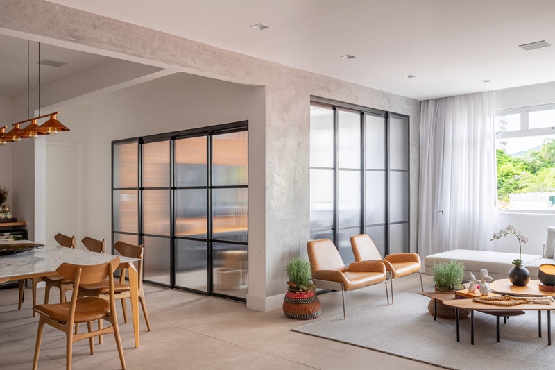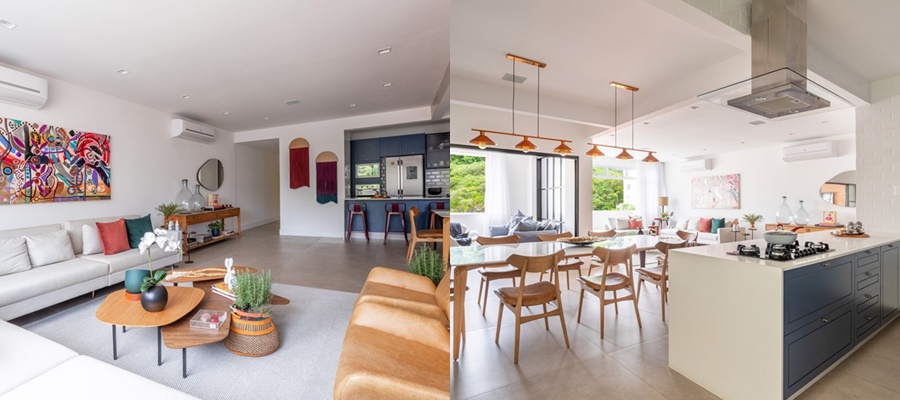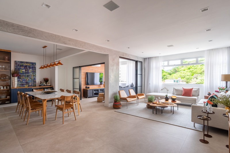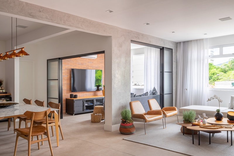 Com sala ampla multifuncional o apê, de 200 m2, traz o aconchego e verde para dentro de casa.