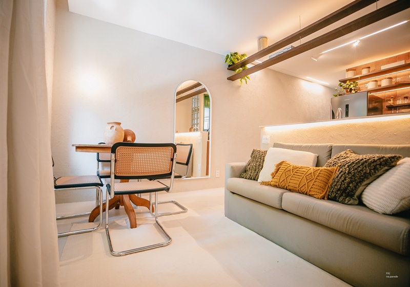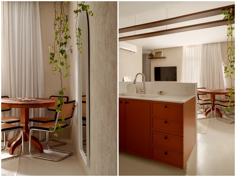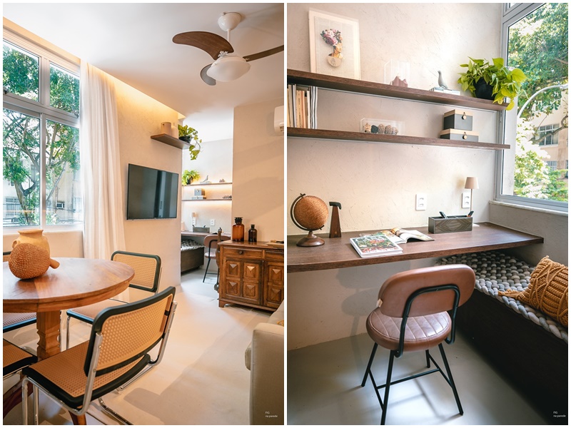 A arquiteta Mariana Monnerat transformou radicalmente este estúdio, de apenas 33 metros quadrados no Leblon, para servir tanto como um cantinho aconchegante para a proprietária no Brasil, como para funcionar como Airbnb.