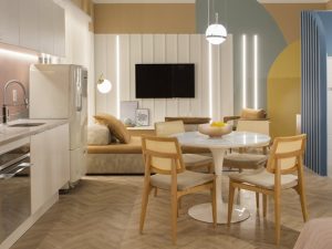 A arquiteta Camila Fleck projeta apartamento-refúgio, na Barra da Tijuca, para uma mãe com três filhos pequenos. O projeto contemporâneo e feminino tem toques clássicos e décor em tons suaves de cinza, rosa e verde água. [...]