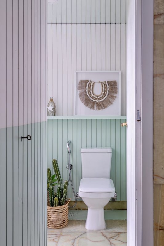 Para manter a ideia de “Morar Mais Por Menos”, as arquitetas mantiveram toda a marcenaria existente, apenas dando uma nova cara com uma pintura que fizesse uma melhor composição com os demais detalhes do décor. “O detalhe da palha natural para o pergolado também foi pensado para dar um tom mais rústico e mostrar que o belo é acessível a qualquer bolso quando usamos a criatividade”, finalizam.