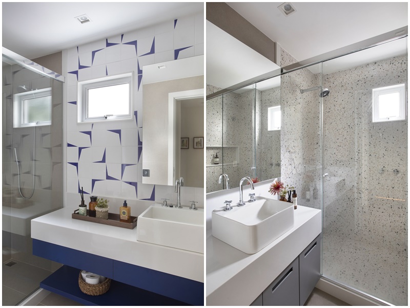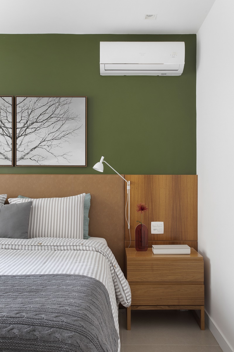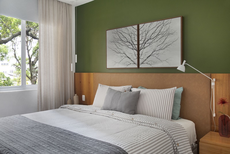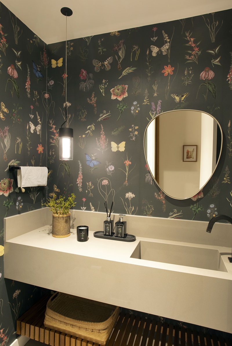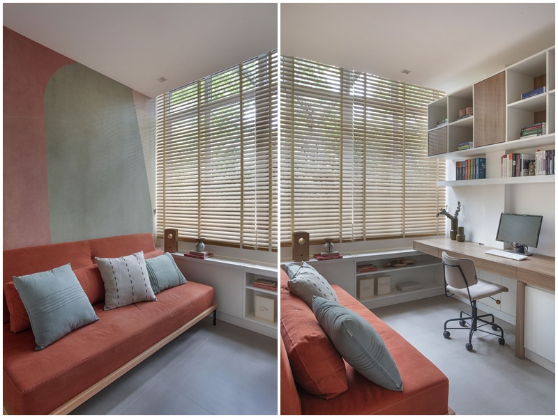 Entre as principais modificações na planta do imóvel, Fernanda conta que reduziu o tamanho da sala para aumentar a suíte do casal e alterou o acesso ao banheiro social para criar um lavabo que não existia na planta original. Ela também eliminou um dos quartos para criar um home office e o closet do casal. “No geral, criamos uma planta circular que hoje permite, por exemplo, acessar a cozinha através dos home offices“, revela ela.