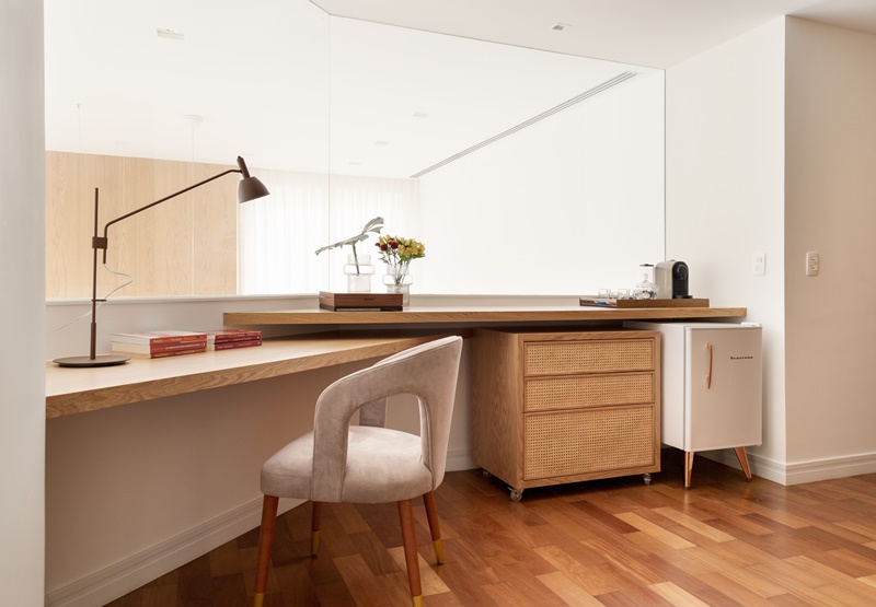 “Nosso maior desafio neste trabalho foi o prazo de execução do projeto, considerando a metragem generosa do apartamento, que tem 400m2. Felizmente, no final, deu tudo certo. A confiança dos clientes no nosso escritório e na equipe de obra e a objetividade deles para expressar seus desejos foram fundamentais para agilizar todo o processo”, conclui a arquiteta Paula Müller.