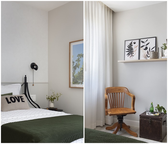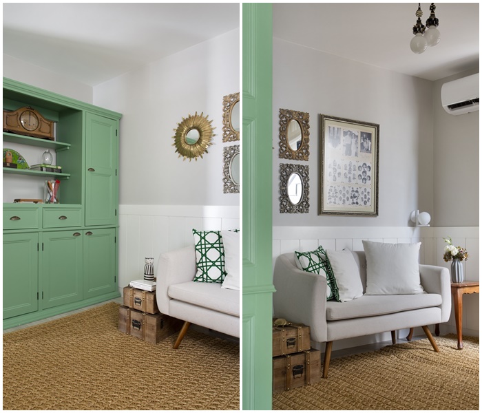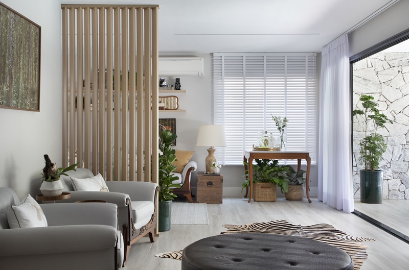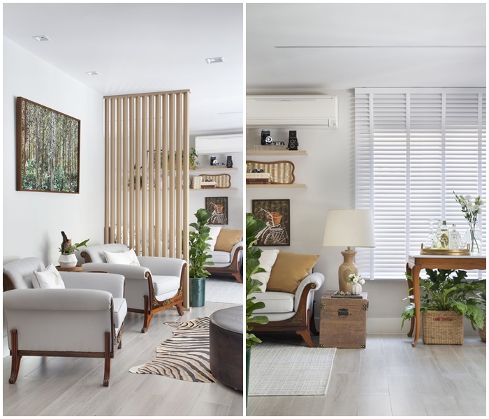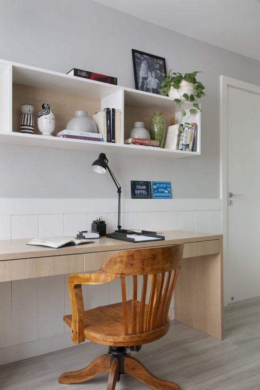No projeto de decoração, muitas peças e móveis de grande valor afetivo, sendo algumas herdadas da família, foram incluídas. É o caso da cadeira de escritório em madeira que pertenceu à sua avó materna e passou para seu pai e depois para sua irmã, antes de chegar a ela. Muitos itens da decoração também foram trazidos pela cliente das muitas viagens de férias.