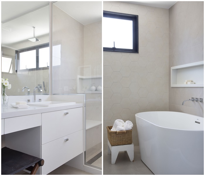 Após a grande reforma, os 4 quartos originais deram lugar a 3 quartos na nova planta, usados como suíte máster (com dormitório, banheiro e closet), escritório e quarto de hóspedes.