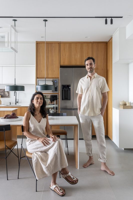 Segundo o arquiteto, o casal pediu um projeto jovem, visualmente leve e “fresco”, para ressignificar o apartamento e ter a sensação de casa nova, além de muitas soluções em marcenarias para otimizar os espaços.