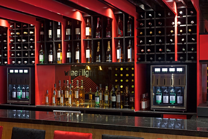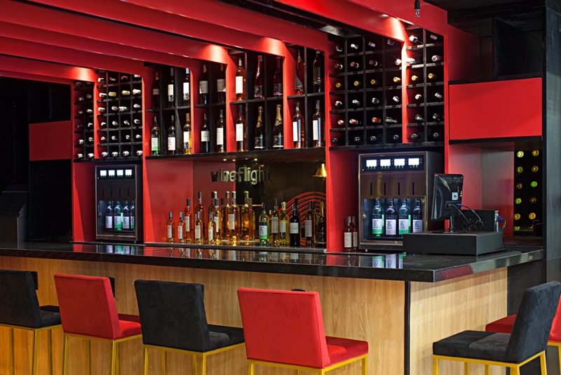O projeto conta com bar de 34 lugares distribuídos entre os 42 metros quadrados de área interna e mais 27 metros de lounge externo, no saguão do aeroporto. Os assentos são divididos em confortáveis poltronas e bancos altos, com predominância das cores preta e melancia em contraste com madeira, garantindo um ar sofisticado. À disposição dos clientes estão tomadas para carregar aparelhos eletrônicos e sinal de wifi. O Wine Flight conta também com um charmoso carrinho que circula ao longo do terminal oferecendo opções de vinho em taça.