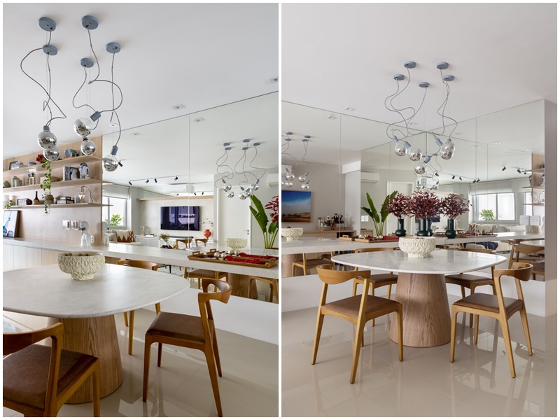 - Curiosidade: “Escolhemos uma mesa de formato orgânico, fugindo do tradicional tampo redondo ou retangular, conferindo mais dinamismo para a sala”, aponta a arquiteta.