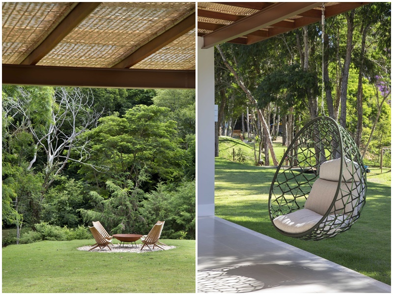 Quanto à decoração, as arquitetas contam que não seguiram nenhum modismo ou estilo pré-determinado. “Trata-se de uma casa pensada para ser confortável e acolhedora”, afirma Bitty. No mobiliário, foram aproveitadas algumas peças de acervo dos moradores, além de um garimpo feito pelo próprio cliente, que tomou a frente para comprar tudo. “Fazíamos um caderno de referências e ele procurava pelos móveis, equipamentos e luminárias correspondentes que achasse mais em conta”, relembra a arquiteta.