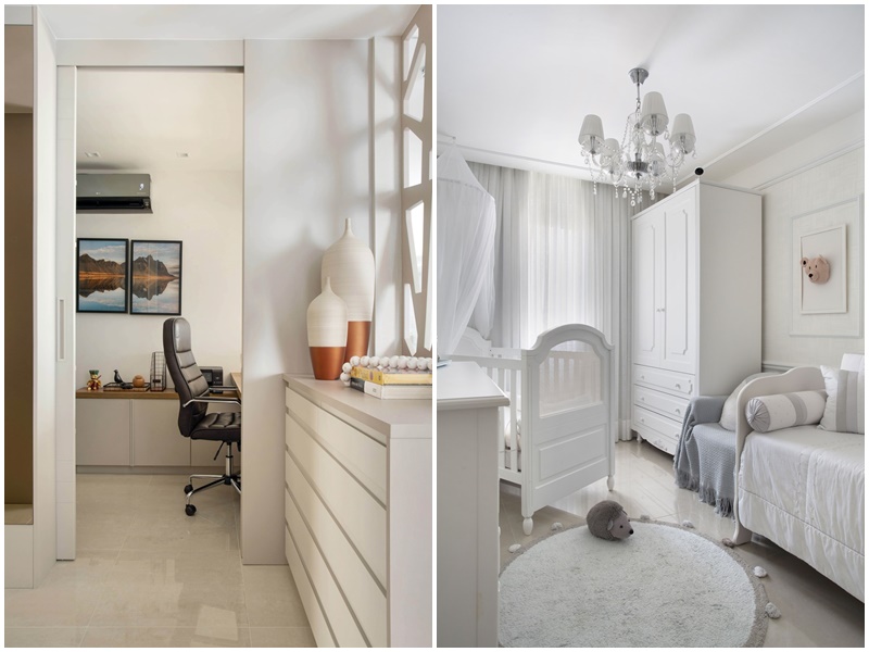 Os demais cômodos mantiveram seu tamanho original, como o quarto de hóspedes, reservado para receber a visita dos pais do casal, que moram em outra cidade; e o quarto do bebê – já planejado no período das obras e recém-chegado à família.
