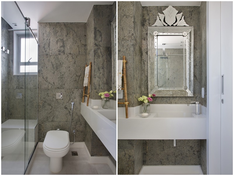 O apartamento de 2 quartos, banheiro social, sala, cozinha, área de serviço, quarto de serviço e banheiro de serviço teve sua planta totalmente transformada em outra planta, agora com uma suíte, quarto de hóspedes, home office, banheiro social, sala e cozinha integrada, uma super área de serviço e banheiro de serviço.