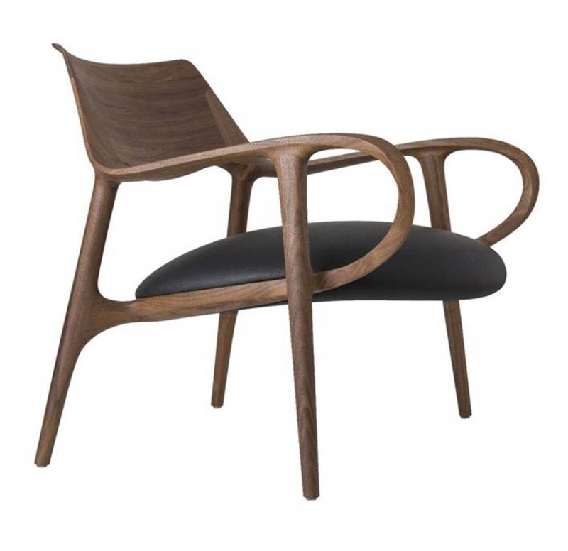 Poltrona Celine assinada por Jader Almeida em nogueira maciça e couro natural, com 80x85x73cm altura, por 10.750 reais no ARQUIVO CONTEMPORÂNEO