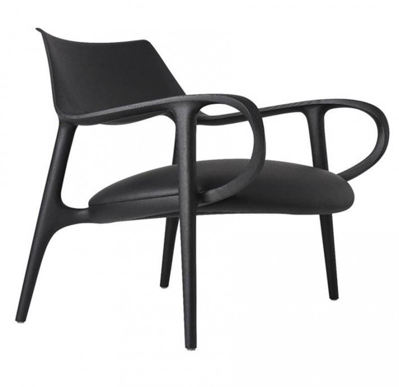 Poltrona Celine assinada por Jader Almeida em tauari maciço ebanizado e couro natural, com 80x85x73cm altura, por 10.750 reais no ARQUIVO CONTEMPORÂNEO
