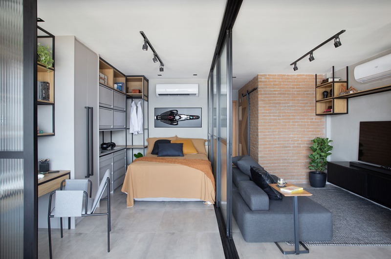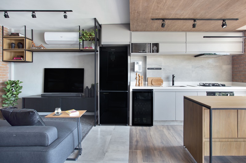 J1 ARQUITETURA E ENGENHARIA TRASFORMA APARTAMENTO DE 45 M2 EM UM LOFT DE ESTILO INDUSTRIAL CONTEMPORÂNEO, COM ESPAÇOS TOTALMENTE INTEGRADOS