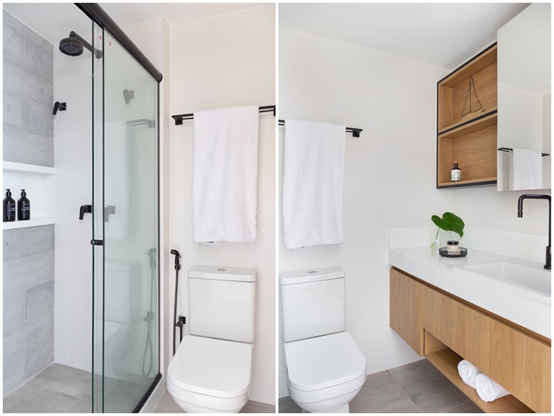 A decoração, de estilo industrial contemporâneo, conta com peças e revestimentos totalmente novos e segue uma base neutra, com destaque para a cor cinza (presente no porcelanato, móveis planejados e estofamento do sofá) e a cor preta (presente nas esquadrias de alumínio, serralheria de alguns móveis, trilhos de iluminação e eletros da cozinha). Já o porcelanato no padrão madeira e a parede de tijolinho entram para deixar os ambientes mais quentes e acolhedores. “Esta mix trouxe sofisticação e modernidade ao projeto”, avalia o engenheiro.