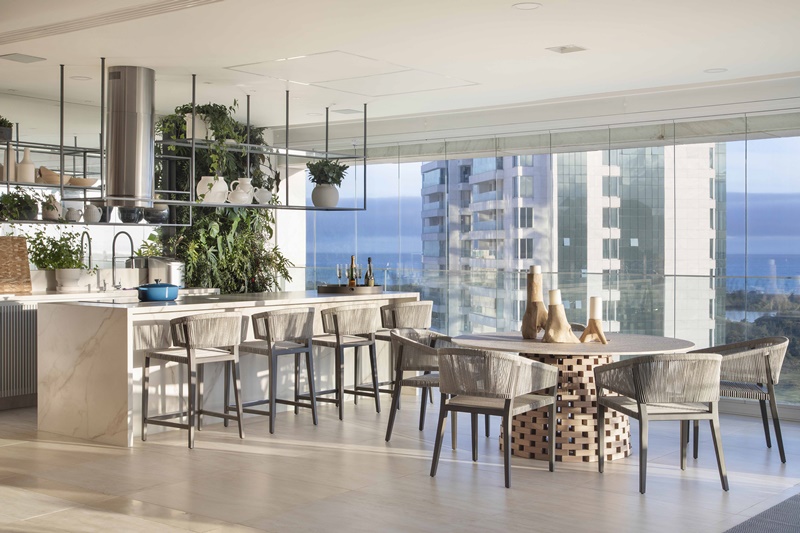 VISTA PANORÂMICA E COZINHAS INTEGRADAS SE DESTACAM NO APARTAMENTO